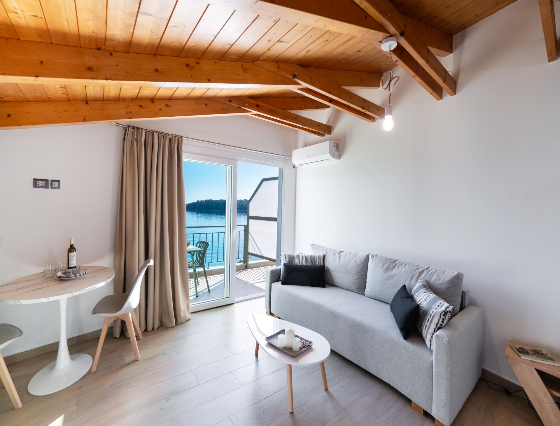 Marmel Seaside apartment in Nydri Lefkada, is a brand new beachfront 50sq.m apartment ideal for up to 4 people with 1 bedroom and 1 bathroom. Offers free WiFi, parking and air-conditioning!