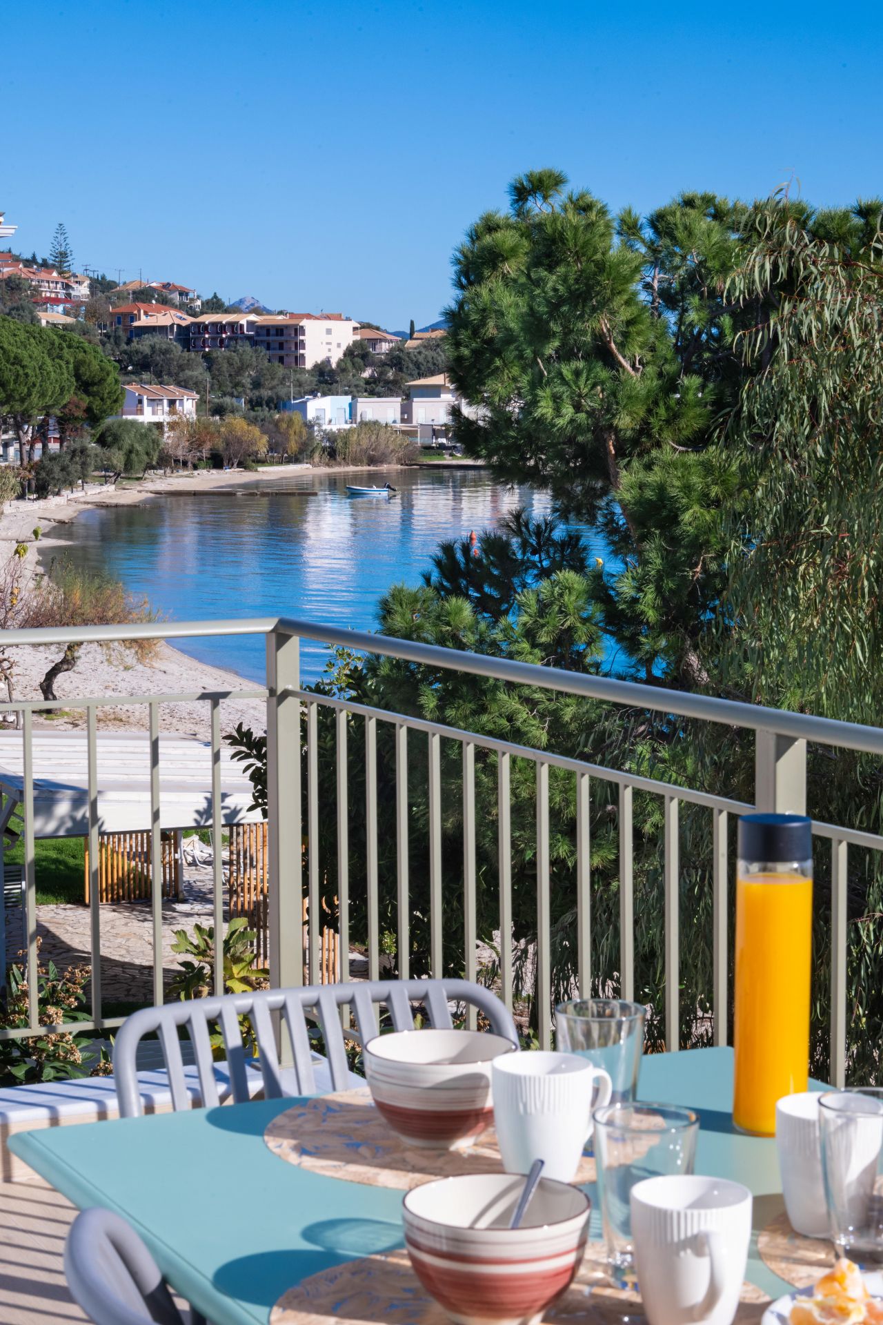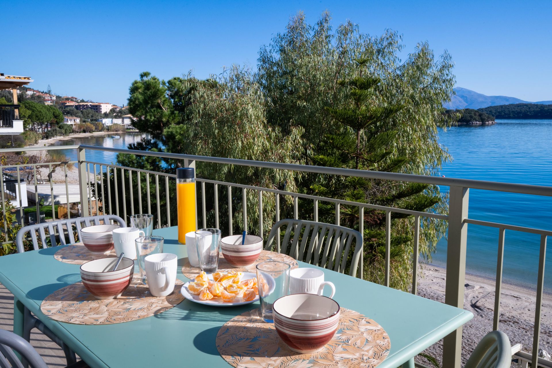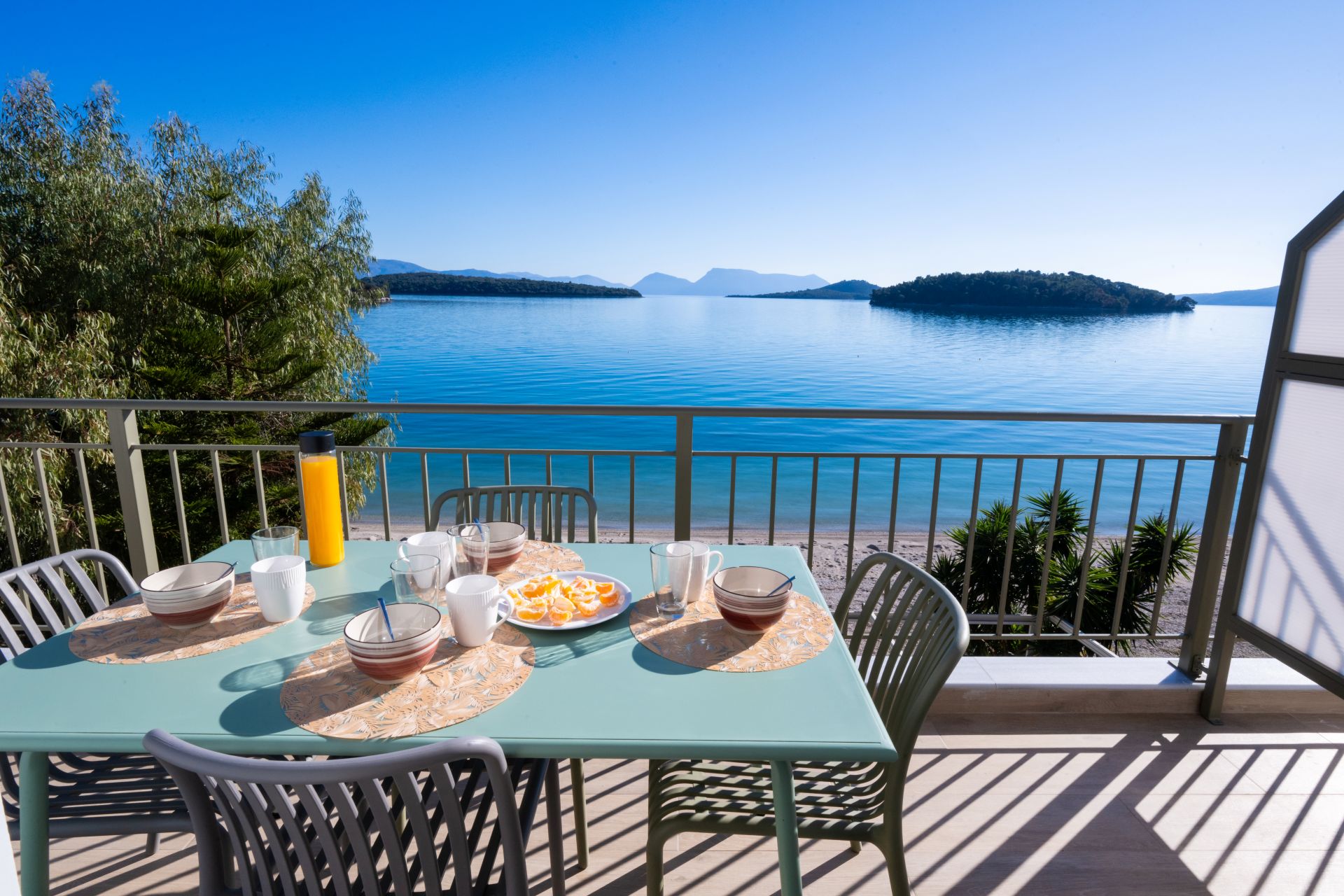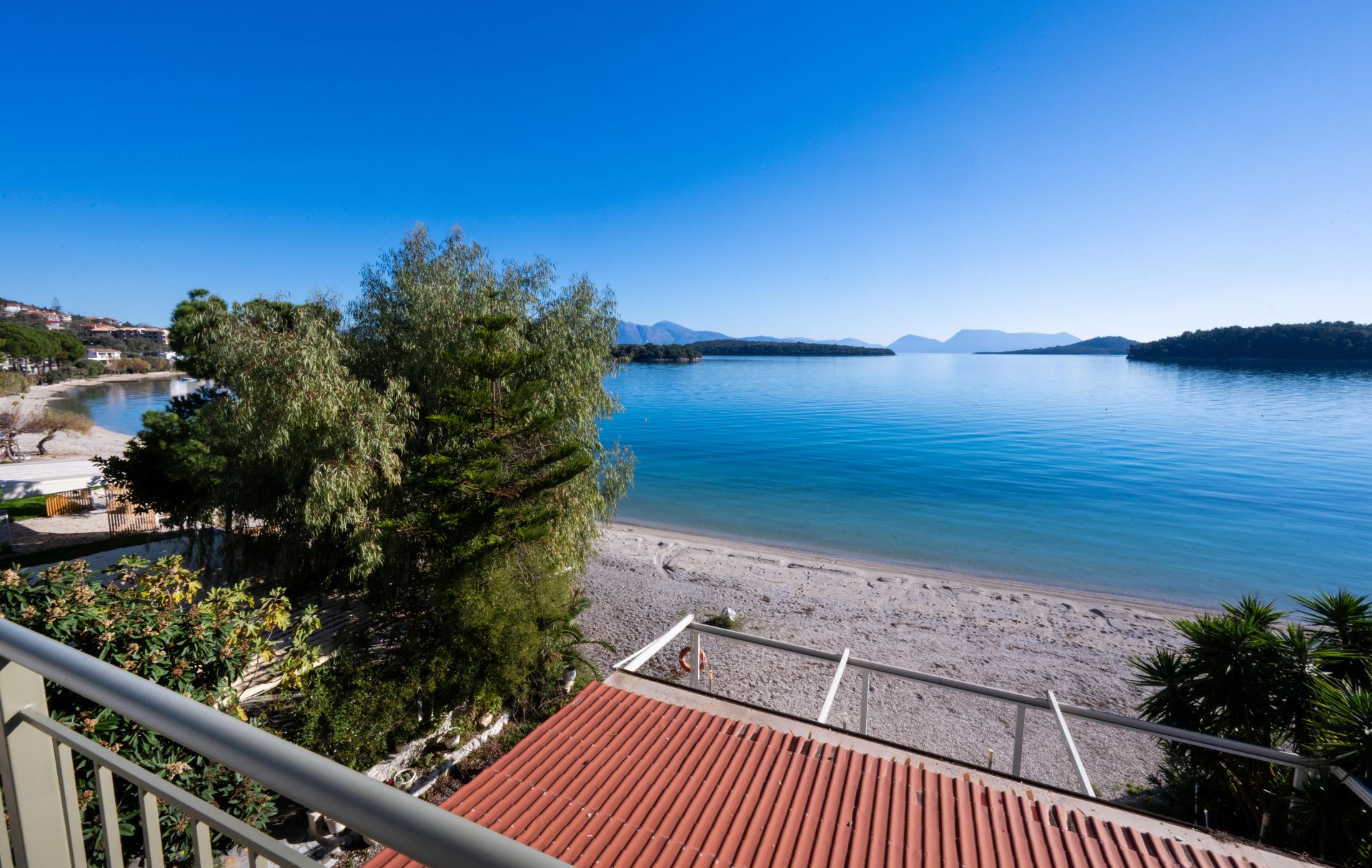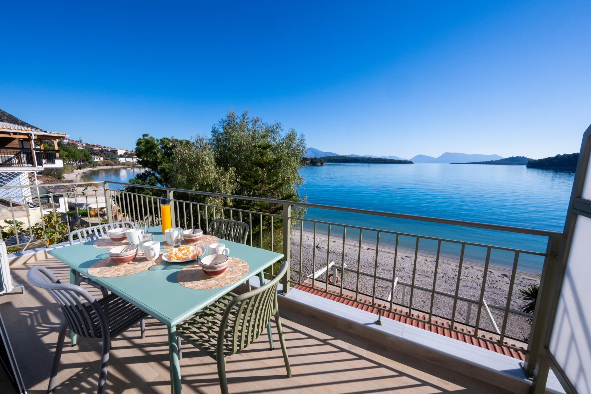 Marmel seaside apartment located in Nydri, Lefkada, right on the organized beach of Nydri.